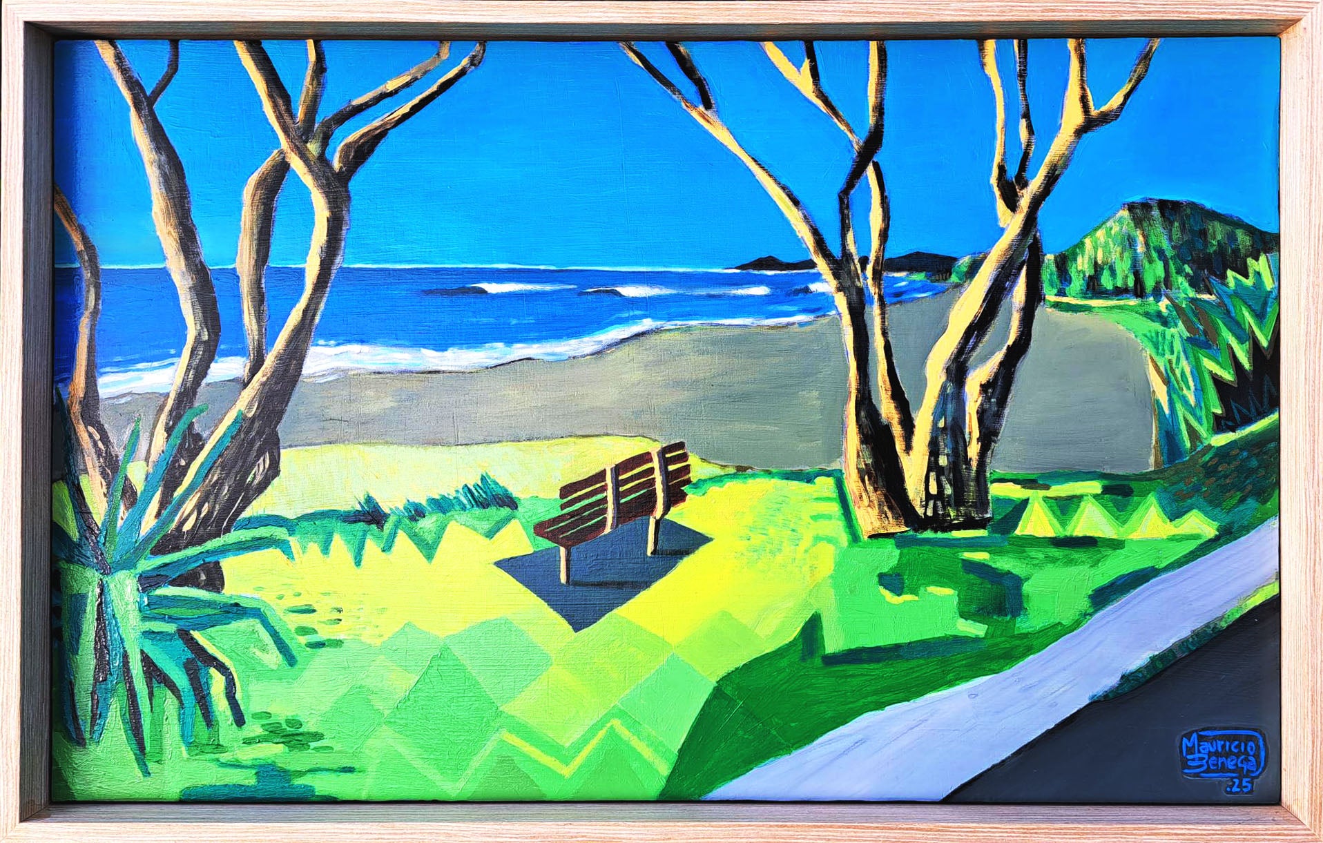 From the series 13 point breaks within 13 minutes drive, Have a Seat and Relax is the third work painted with acrylic on wood, floating box frame - 380x600mm